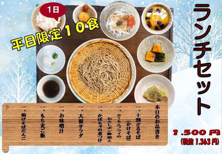 平日限定のランチセット、12月26日(予定)までのお品書きです。