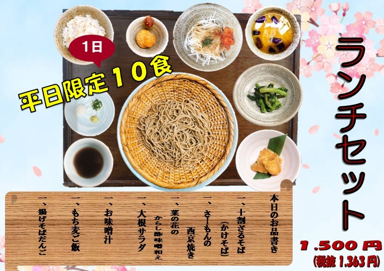 平日限定のランチセット、4月10日(予定)までのお品書きです。